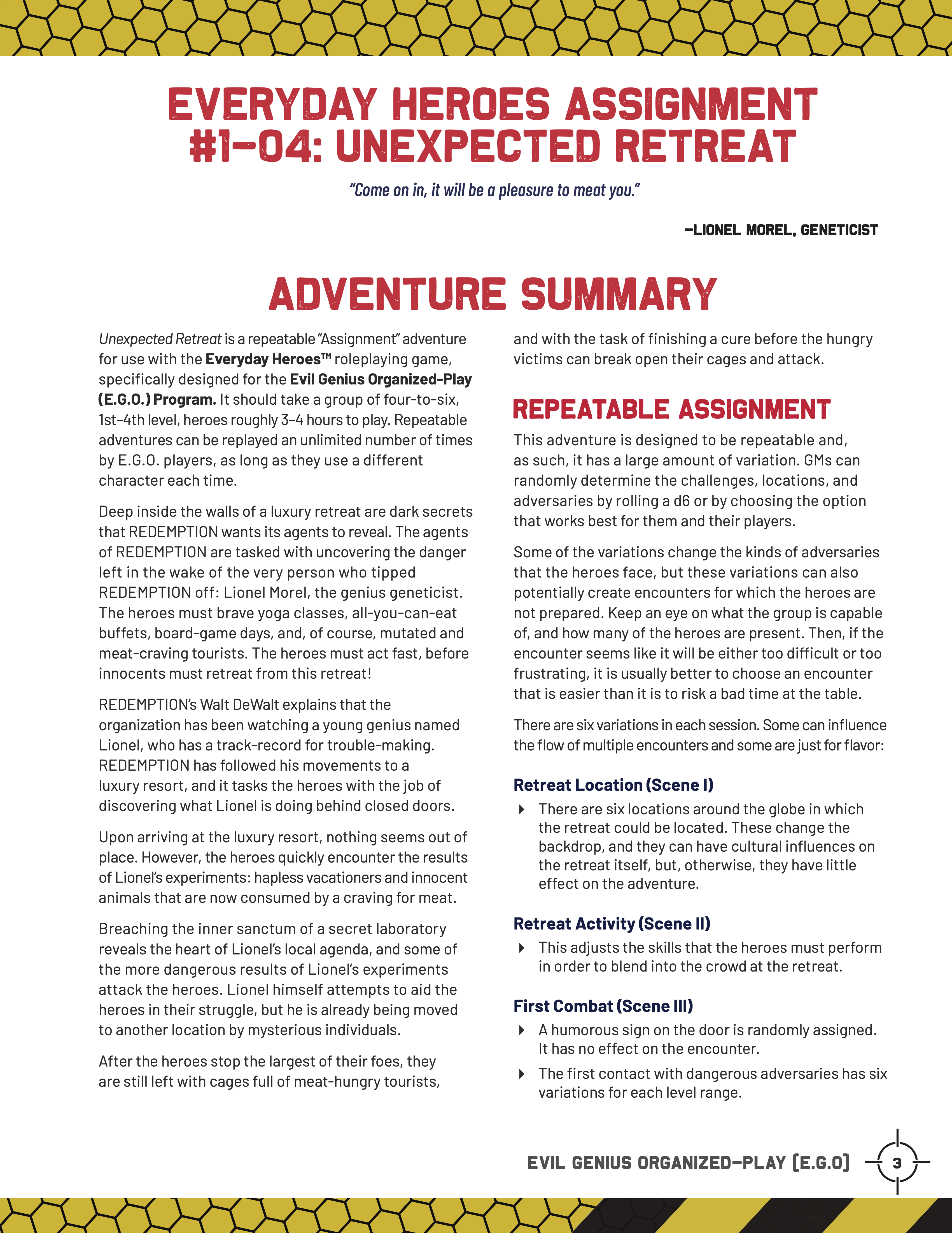 - An E.G.O. metaplot Assignment adventure for levels 1-4 heroes.