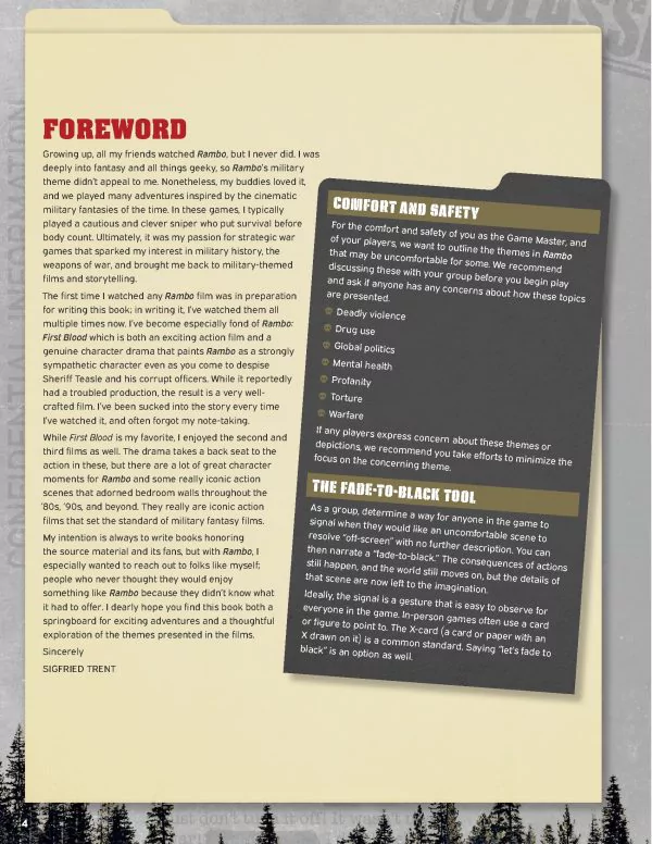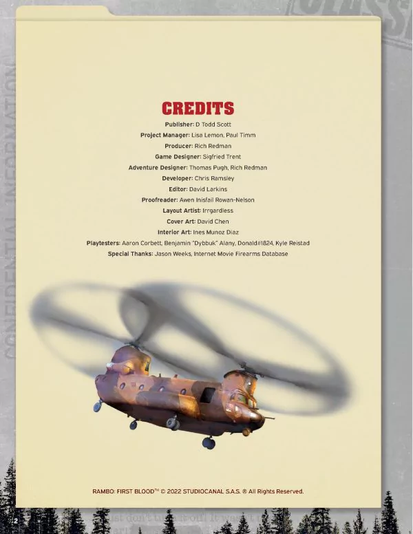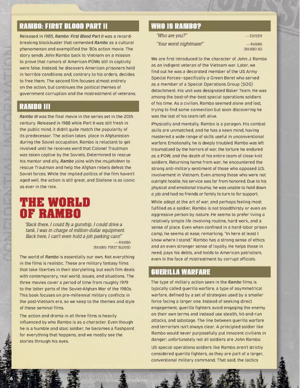 - A 112-page Cinematic Adventure set in the world of Rambo.